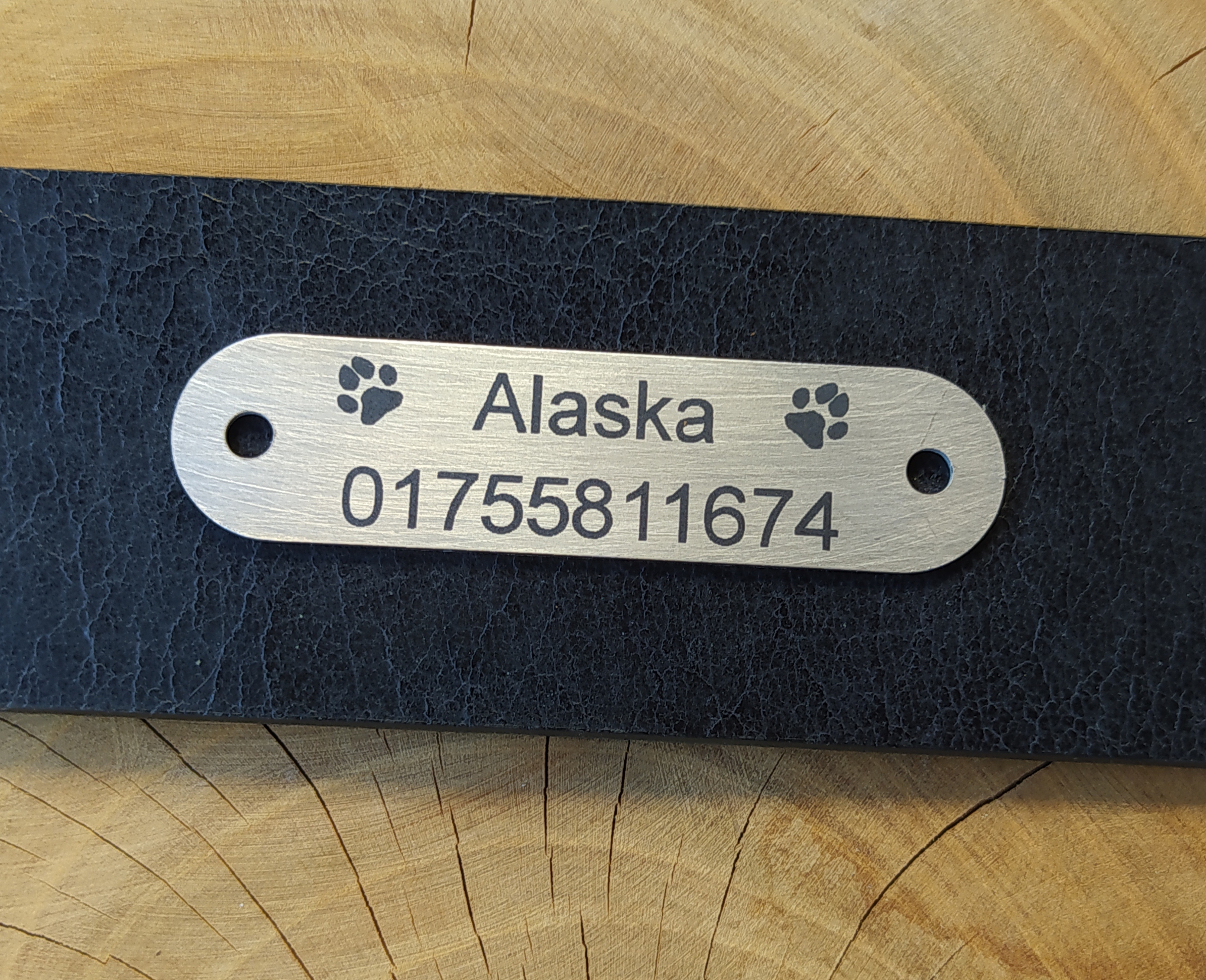 Edelstahlmarke für Hundehalsband mit Name und Telefonnummer