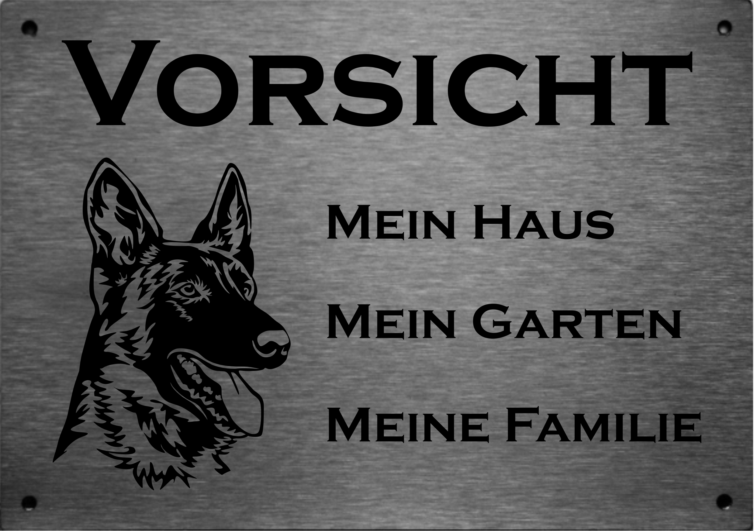 Edelstahl Warnschild Deutscher Schäferhund VORSICHT Mein Haus mein Garten meine Familie