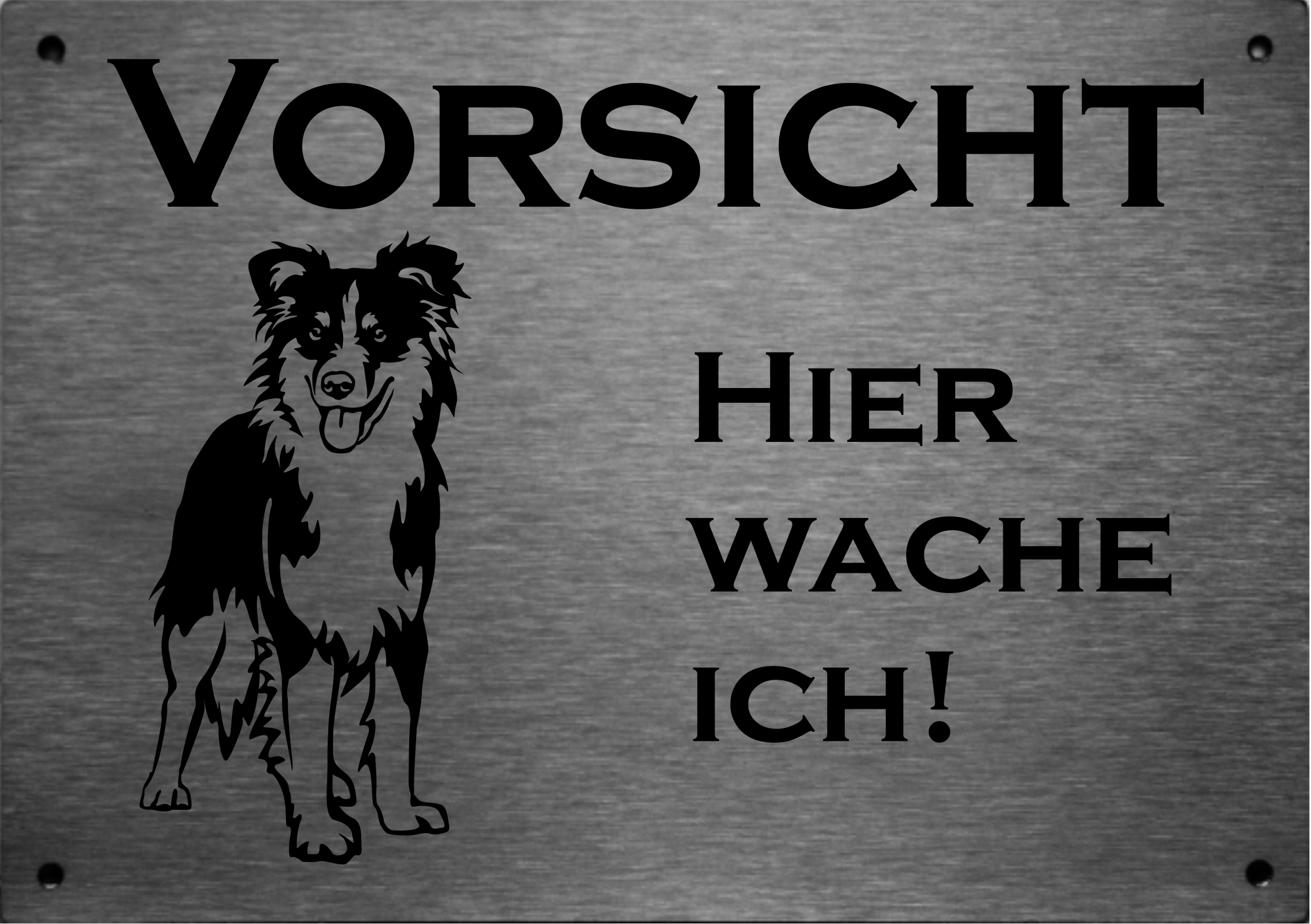 Edelstahl Warnschild Australian Shepherd VORSICHT Hier wache ich!