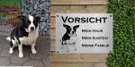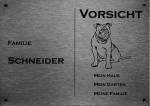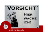 Hochwertiges Edelstahl Warnschild mit lasergraviertem Motiv Ihres Lieblings 3 verschiedene Größen | 3 verschiedene Text-Gravuren + gratis Edelstahl Hundemarke mit individuelle Lasergravur